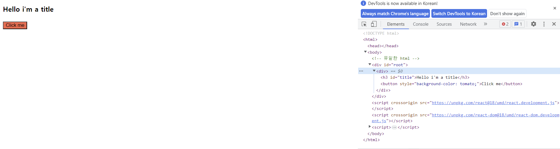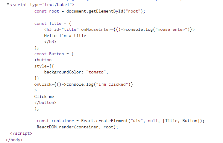 // const container = React.createElement("div", null, [Title, Button]);