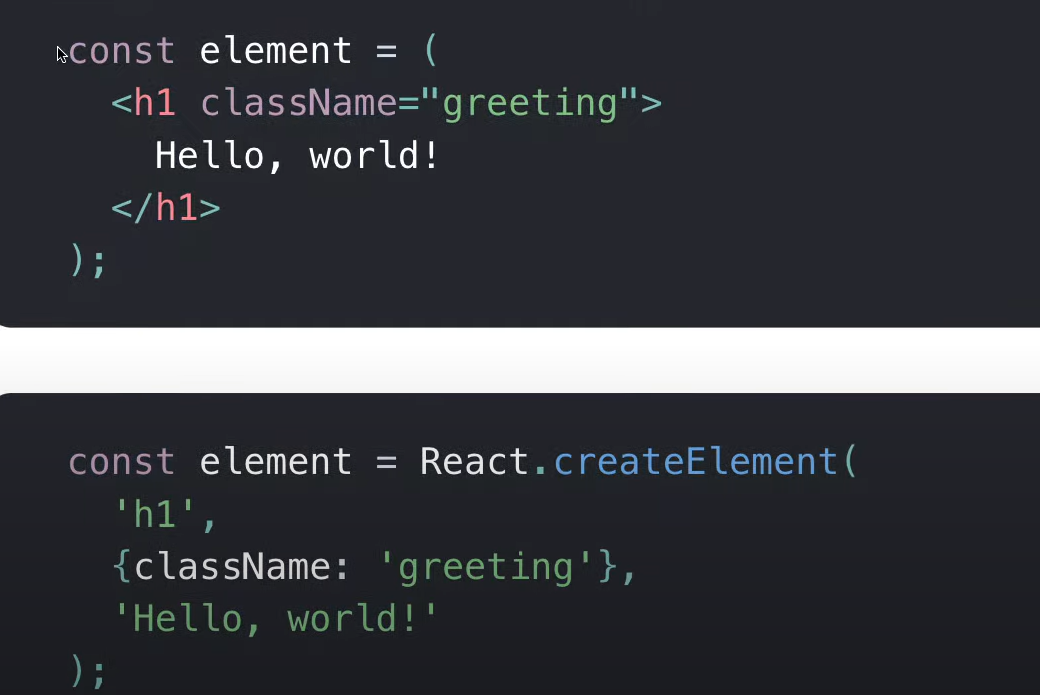 리액트를 사용한 어려운 방법에서 프론트엔드 개발자는 절대 사용하지 않는 createElement를 사용해서 react요소를 만들었었습니다. 이것을 쉽게 해주는 일반적인 html이랑 거의 비슷하게 생 개발자들이 주로 사용하는 JSX를 사용해서 createElement를 대체하도록 하겠습니다.